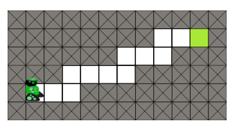 Der Roboter soll die rote Flagge erreichen, ohne gegen die Hindernisse zu laufen.